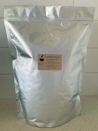 After slow beginnings and many trials trying to satisfy our very fussy taste testers, we finally roasted what we believe to be an amazing coffee blend now called Garfield House Original Dark. Bags of coffee beans and ground coffee are sold in 1kg bags online. We have also just recently introduced a $10 sample bag. Bulk coffee purchases are also available in 3kg bags and 5kg tins.